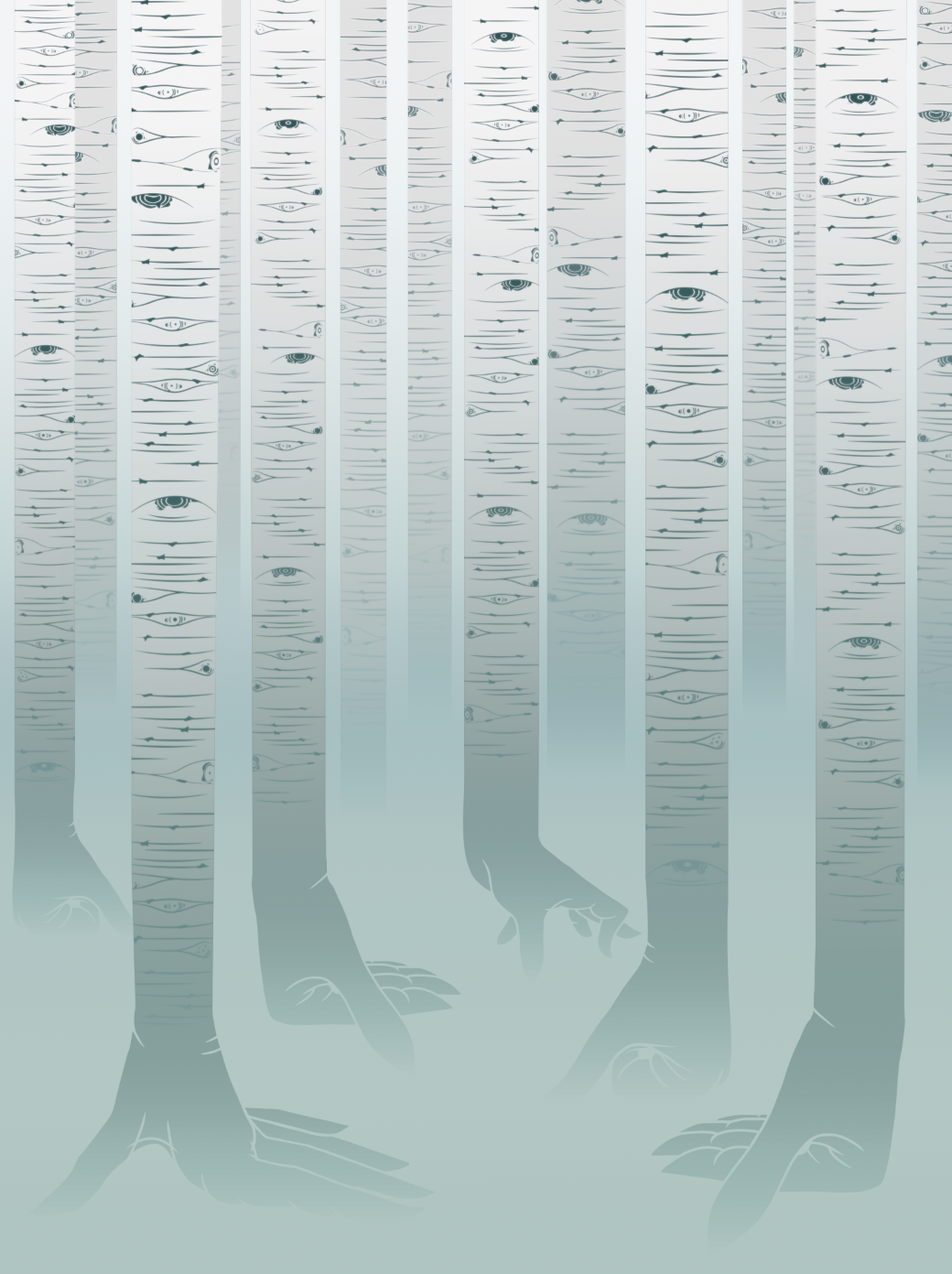 Instinct depicts a nomadic herd of Aspen trees as they make their way through the early morning mist of the forest. This piece is about the connection that we as a species have to the woods and reimagines the trees root systems as hands.